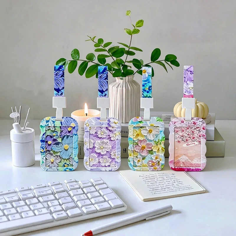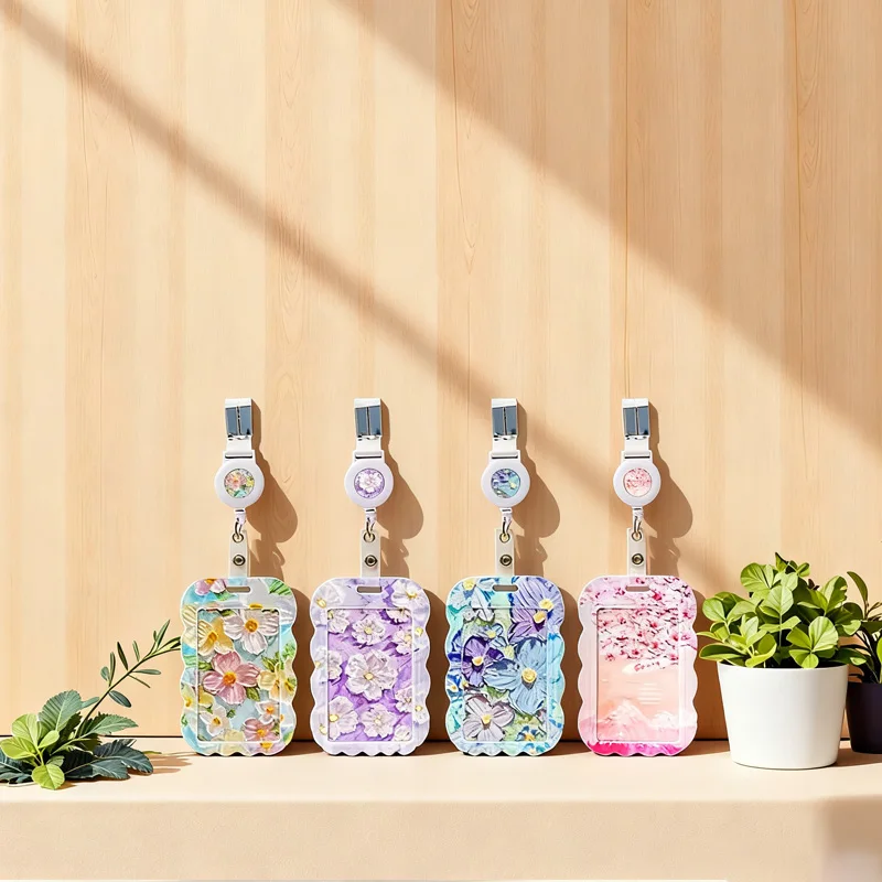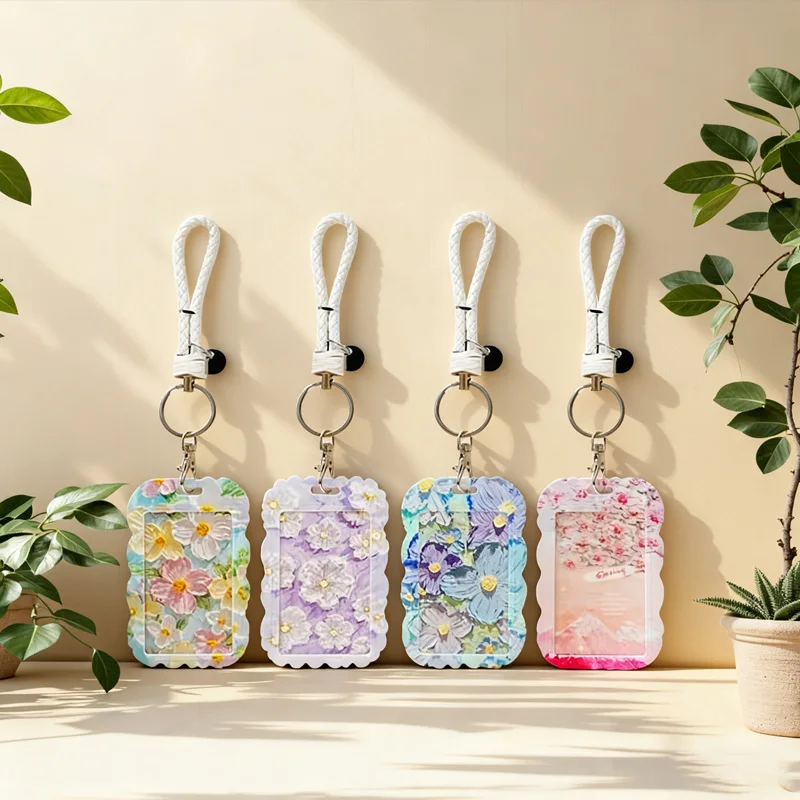 New Arrival Embossed Painting Pattern Card Holder Lanyard Set